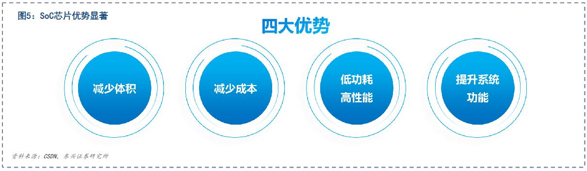 减少成本:需要封装测试多颗集成电路,成本较高;如果整合成一个SoC芯片,只需要封装测试一颗集成电路,成本较低。
