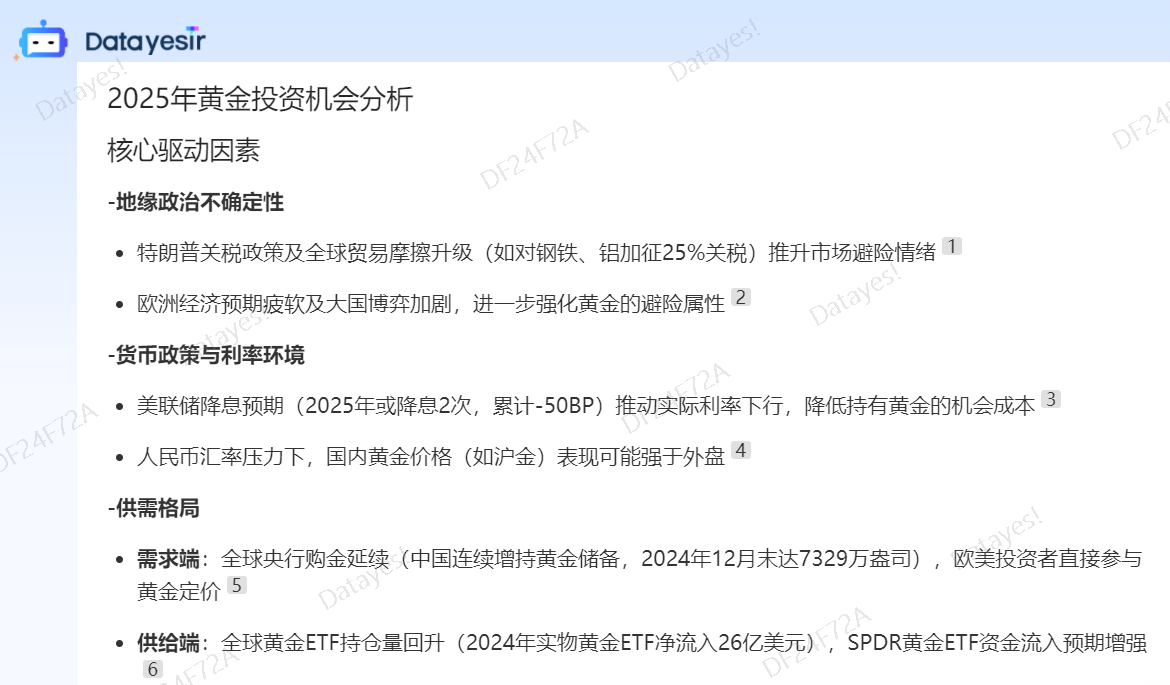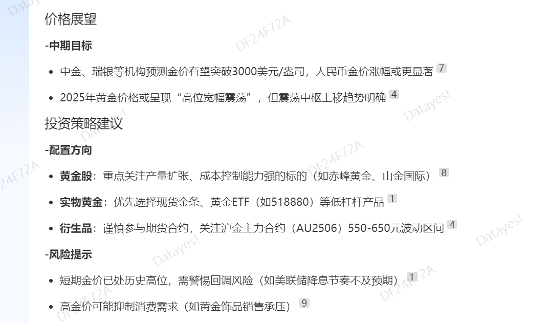 我试着在datayesir里提出一个问题:如何看待2025年金价的波动情况。得出的答案质量已经远超过很多股票小白的思考结果,甚至比很多自身投资者都要全面;要是人类还想通过股票赚钱,但是对什么都一知半解,那么,随着AI越来越智能,我们的出路在哪里?
