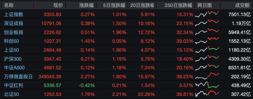 昨日A股全天冲高回落,三大指数小幅上涨。两市全天成交额1.94万亿,较上个交易日放量2265亿。