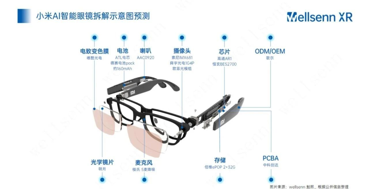 小米眼镜供应链已经有相关研究报告提前拆解