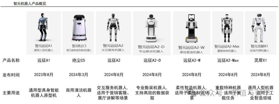 智元机器人,产品持续迭代,2024年发布5款人形机器人