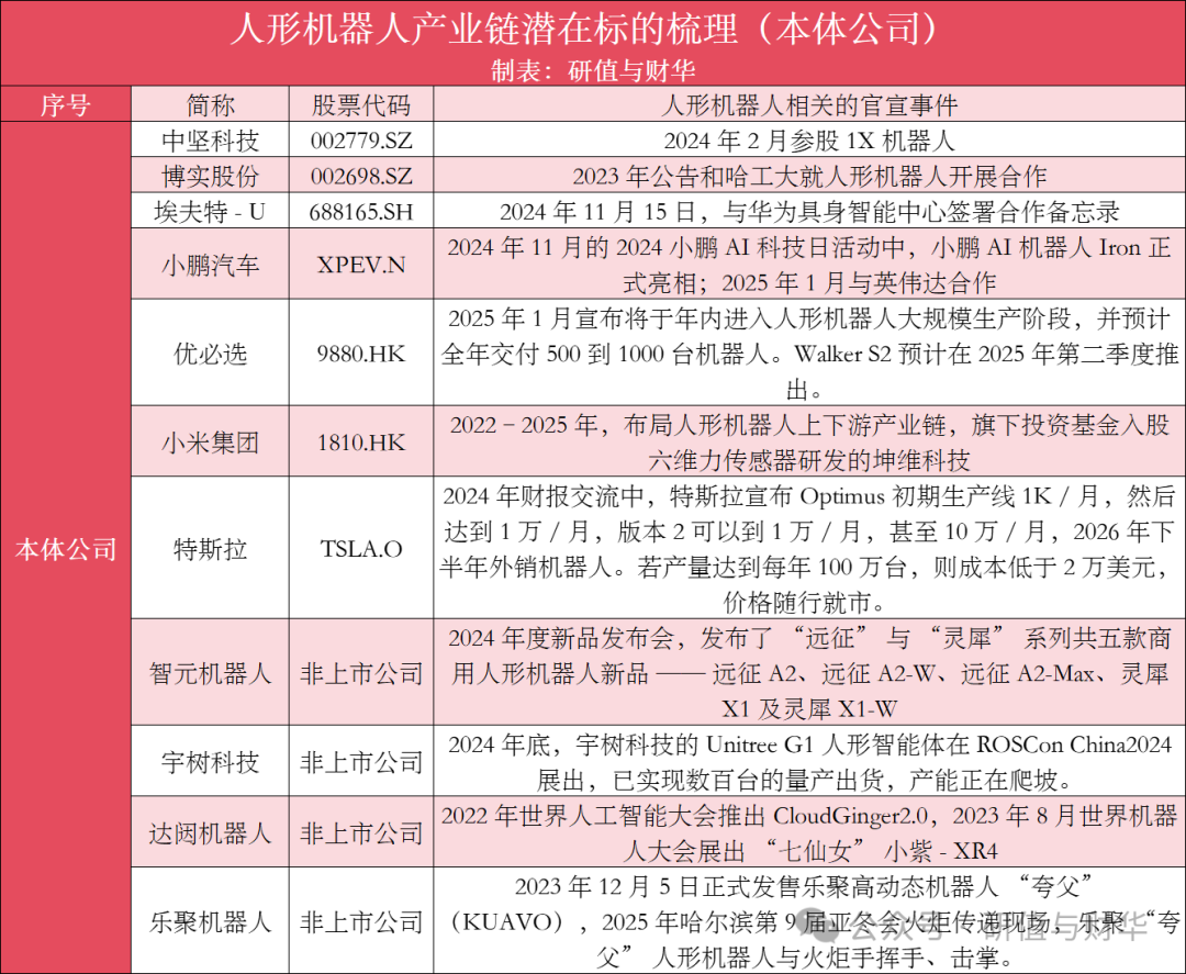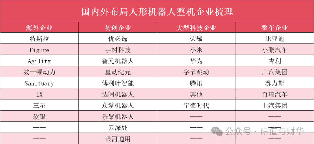 我们将国内人形机器人企业划分为四类,并对主要公司进行了梳理: