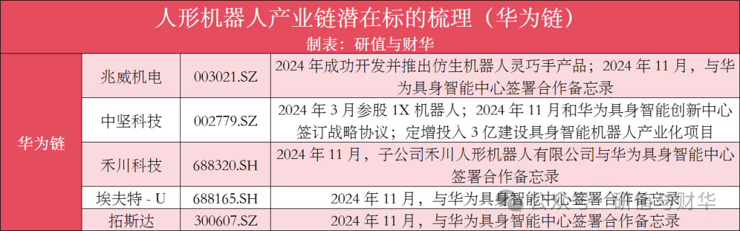 华为于2024年11月宣布华为(深圳)全球具身智能产业创新中心正式运营,依托具身大模型,联合大量企业构建生态圈,为人形机器人的具身智能发展打下基础。(本文首发公众号:研值与财华)