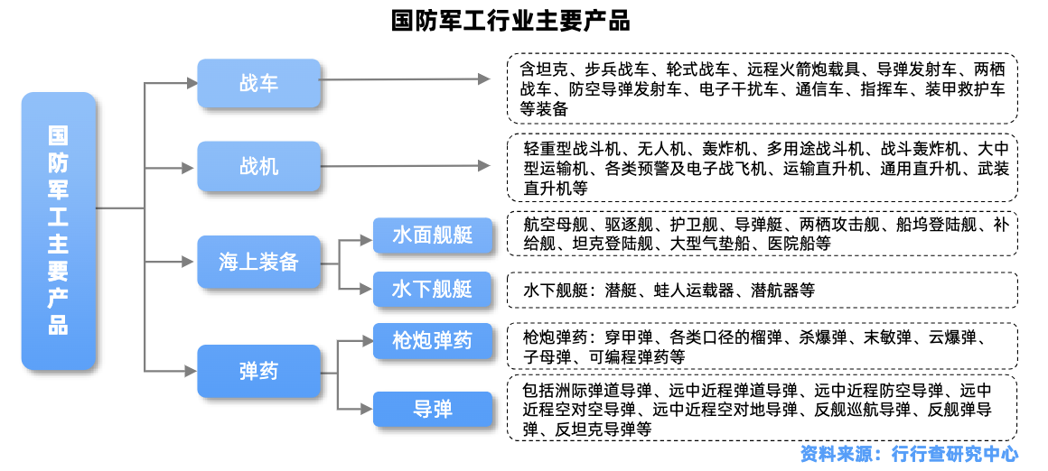 军工装备处于军工产业链的中游,整个装备体系大致分为主战装备与非主战装备两大阵营。