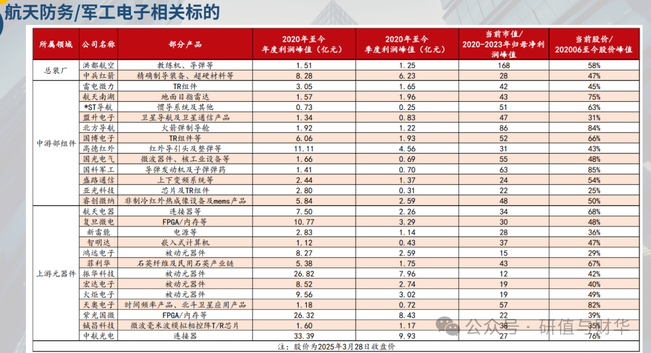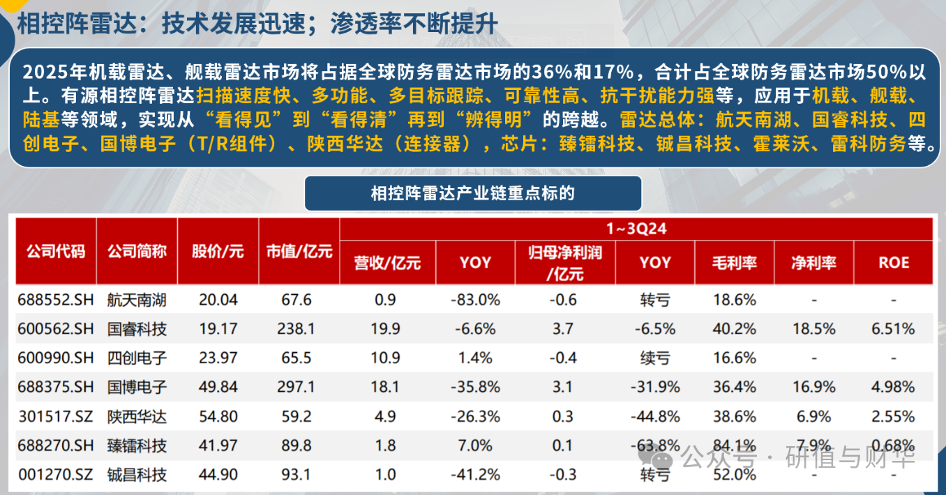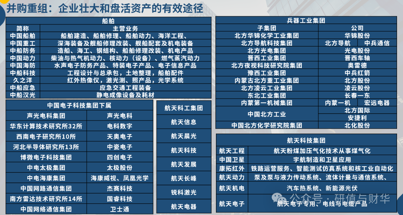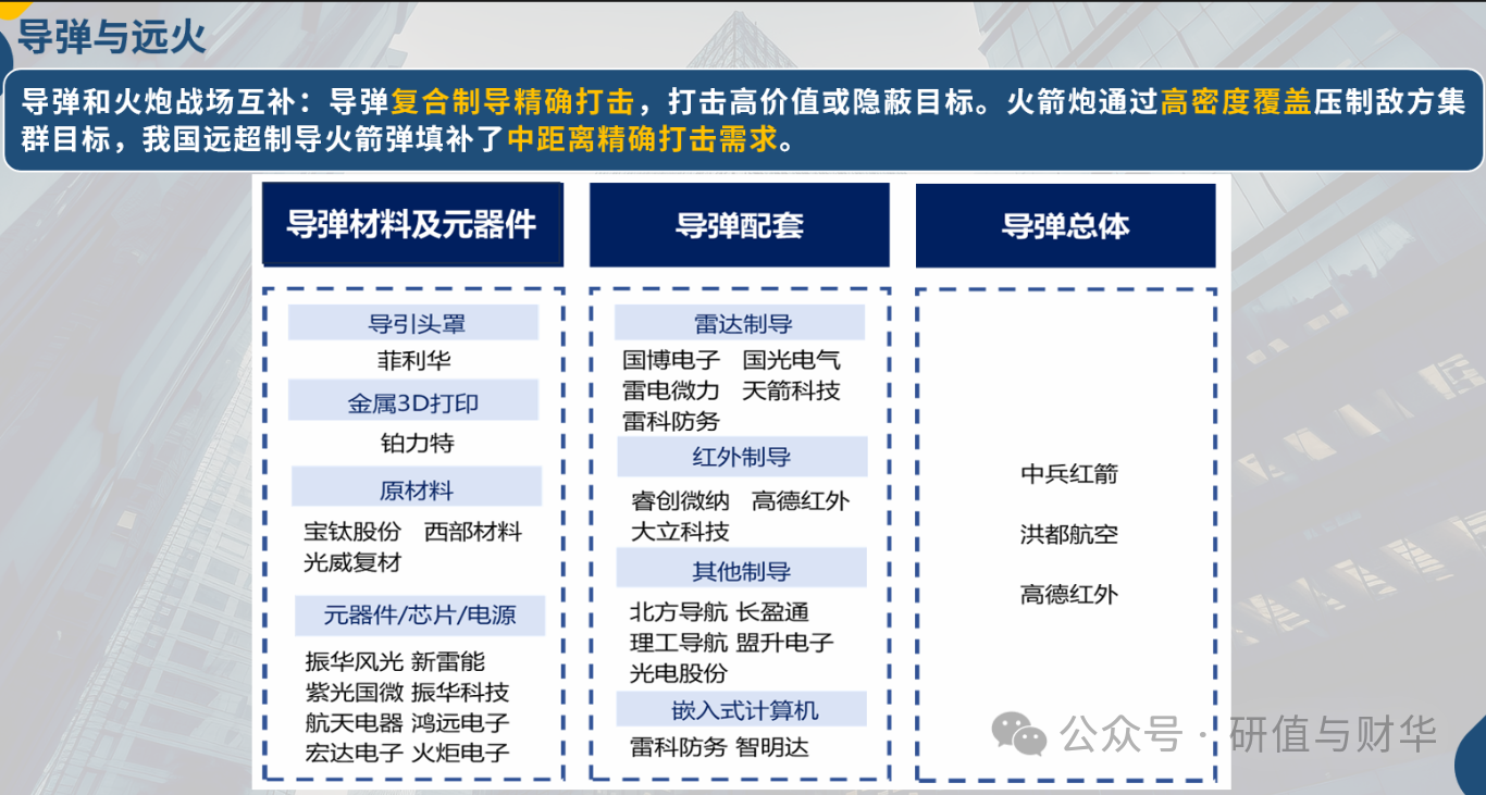导弹与航天:航天科工(导弹制导系统),航天电子(卫星载荷)。