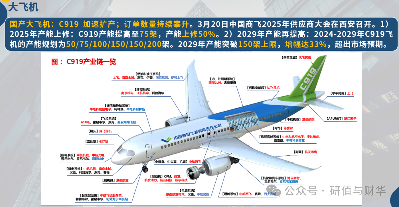航空:中航沈飞(歼-20/歼-35总装),中航西飞(运-20/C919机体)。