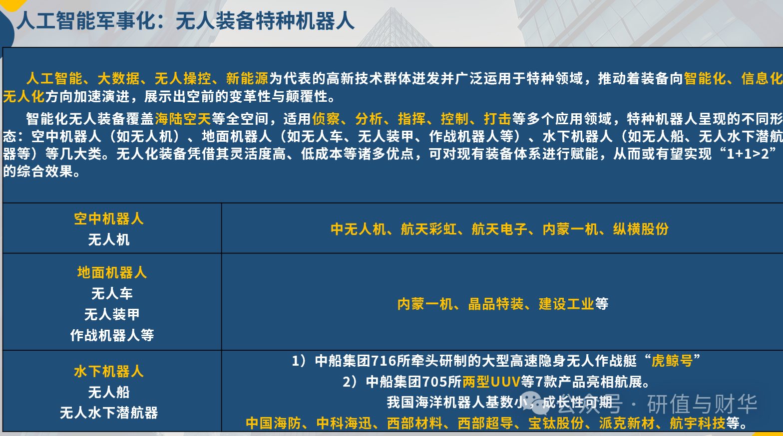 船舶领域:中国船舶集团(动力系统、舰载雷达),中国动力(舰用综合电力系统)。