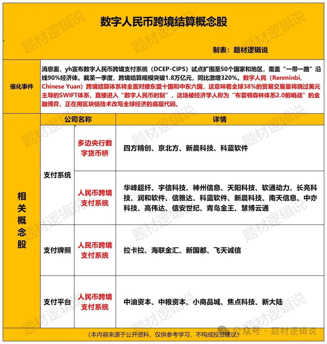 以下是A股数字人民币跨境支付概念核心个股梳理: