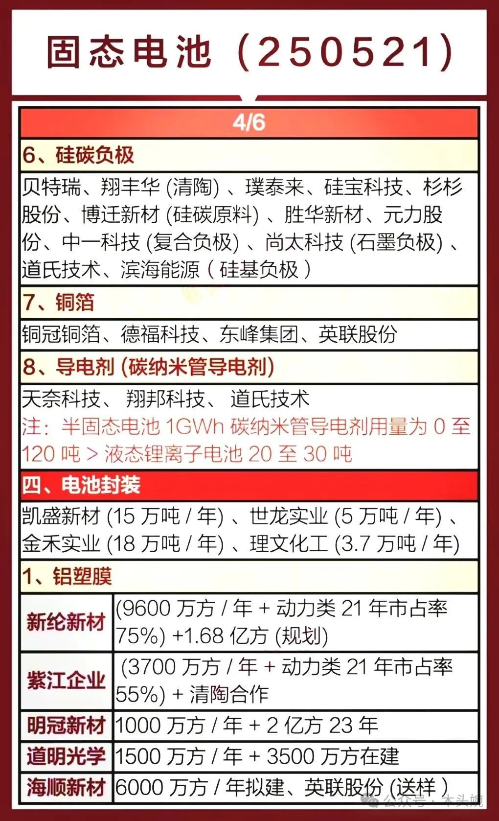 固态电池封装概念:紫江企业、海顺新材、天奈科技、璞泰来等等。