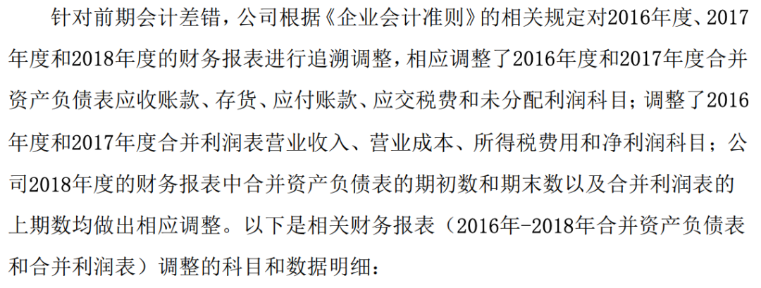 这期间的珈伟新能更是频繁违规,信息披露违规、财务核算不规范、股东高管违规减持、内幕信息管理不善等等。其中,财务核算不规范被罚可以说是珈伟新能的一个转折点,2019年10月29日珈伟新能发布的会计差错公告显示,2016-2018年主要营收、成本、利润、资产、负债都有不同程度的调减或调增。