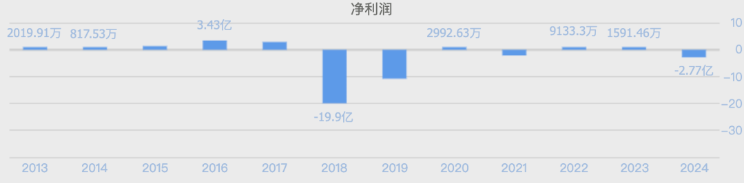珈伟新能净利润从2016年的赚3.43亿,到2018年就变成了亏损19.9亿,然后再也没有恢复元气,2019年继续亏损10.75亿,2021年亏损2.21亿,2024年再亏2.77亿。