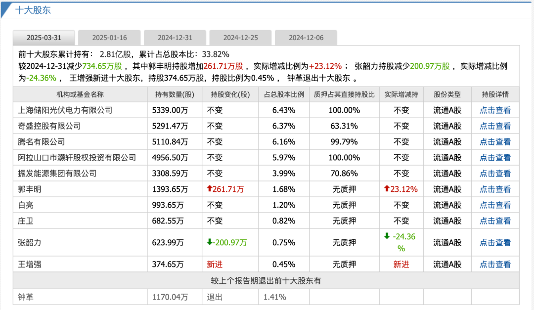 有意思的是,在阜阳泉赋开空头支票期间,珈伟新能股价曾一度涨超65%,持股5%以上股东上海储阳在2024年11月24日-2025年2月7日期间减持227.33万股,不过此次减持是因为上海储阳股票质押被强平而减持。