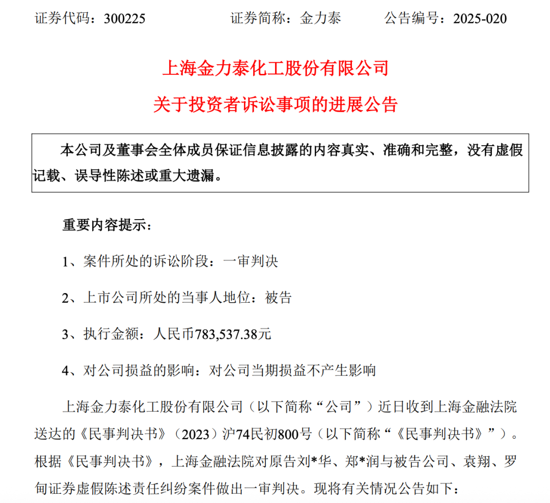 金力泰的这份涉诉公告显示,2021年6月曾披露总裁及控股子公司总经理在6个月内的增持计划,增持金额不低于1.5亿,增持金额合计不低于3亿,但6个月后实际增持0股增持0元。
