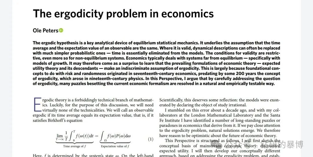 这一诞生于统计力学与概率论交叉领域的新兴范式,以“时间平均”与“集合平均”的根本差异为钥匙,揭开了传统经济学模型的底层缺陷。