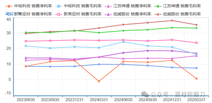2021 年以来,纽威股份毛利率持续攀升,到 2024 年高达 38%,领先中核科技、新莱应材等企业。