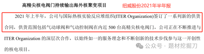 在核电方面,早在 2021 年,公司半年报就提到与国际热核实验反应堆组织签订了合同,包括 500 台高精尖核电阀门,这彰显了公司的技术实力。