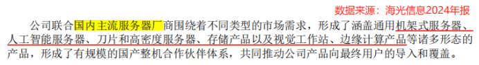 年报中显示,公司联合国内服务器厂商,形成了机架式服务器、AI服务器、存储和边缘算力等诸多产品,形成国产整机合作伙伴体系。