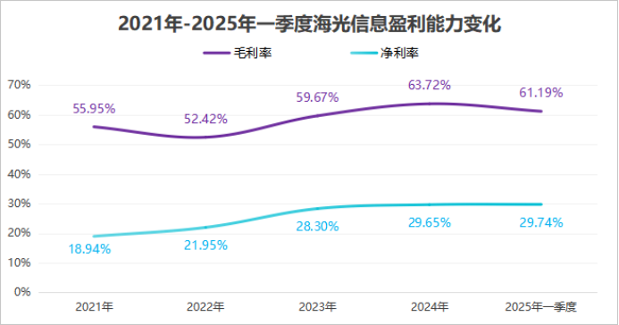 2024年海光信息毛利率高达63.72%,与此同时,瑞芯微毛利率为37.59%、韦尔股份只有29.44%。而且公司净利率表现也不错,2021-2024年,已经从18.94%增长至29.65%。