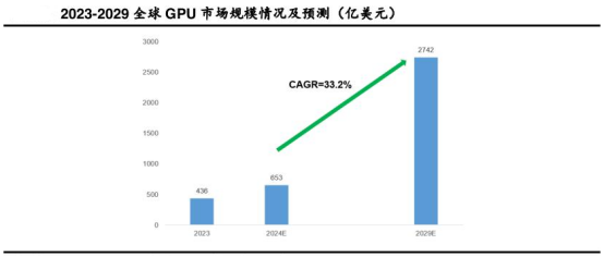 芯片为智算中心提供高算力支撑,主要以GPU、FPGA、ASIC等类型芯片为主。GPU更适用于并行计算和深度学习,是AI服务器算力的基石。根据Statista的数据,2023年全球GPU市场规模为436亿美元,预计2029年市场规模将达到2742亿美元,预计2024-2029年复合增速达33.2%。