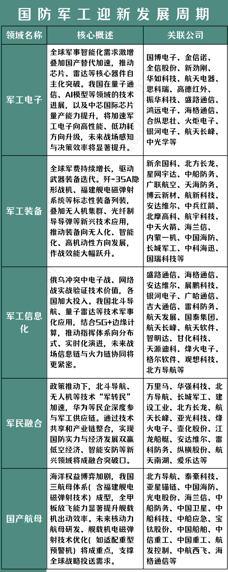 随着国防现代化提速与军贸需求释放,这些领域正推动军工行业向科技赋能深度转型,值得重点关注。