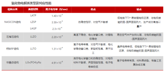 (资料来源:《氧化物系锂离子固态电解质研究进展》,民生证券研究所)