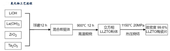 以LLZTO为例,其原材料主要为氢氧化锂、氢氧化镧、氧化锆、氧化钽,通过球磨混合后煅烧得到分体,后续采用热压烧结形成电解质膜。