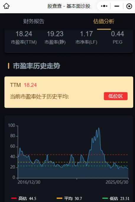 过去十年,公司平均估值是30.7倍PE,低估线是23.5倍PE。