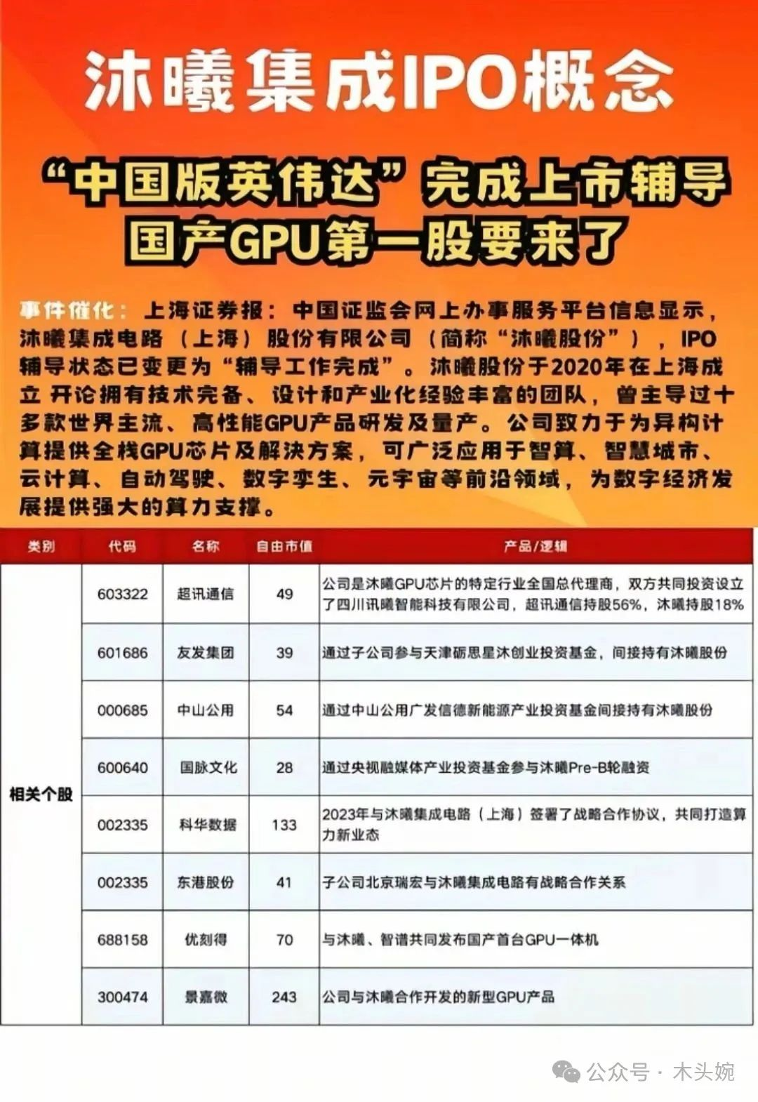 (5)沐曦集成概念龙头梳理