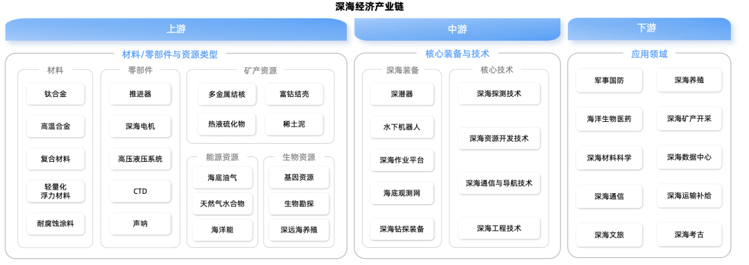 深海经济产业链形成了“上游技术突破-中游装备制造-下游资源开发”的完整链条。