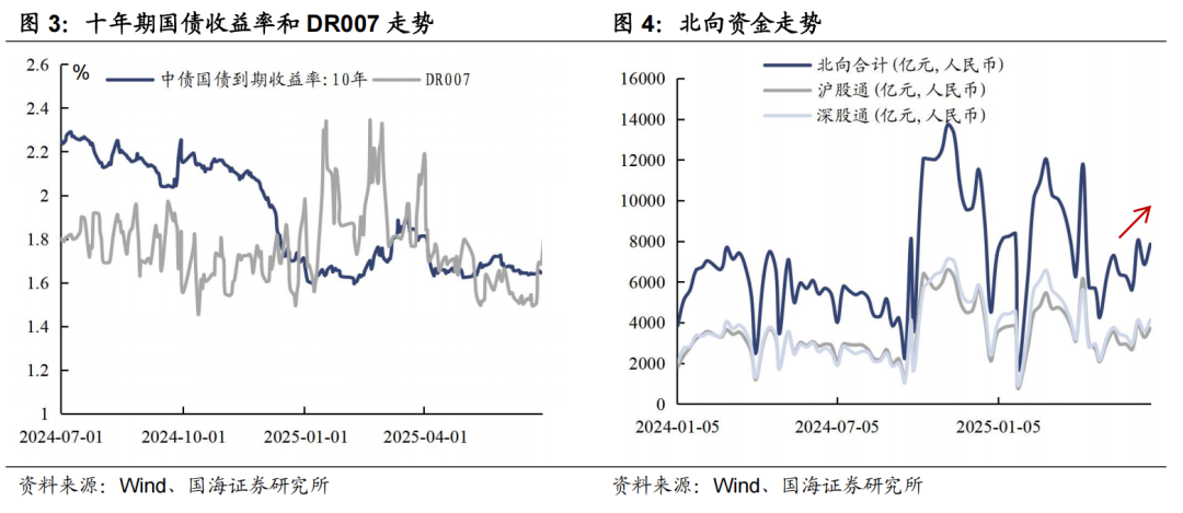 一方面,在债市实际利率下行及人民币汇率企稳的支撑下,权益市场有望迎来估值重构。目前,十年期国债收益率在1.6%-1.7%区间窄幅震荡,短期内缺乏大幅上行的基础;同时DR007亦维持相对宽松水平。在此基础上,实际利率下降直接压低了资产定价的贴现率,显著推升了具备长期增长逻辑的优质成长股估值弹性。此外,近期人民币兑美元汇率稳中有升,有效缓解了外资担忧的汇率风险,并吸引增量资金逐步回流。