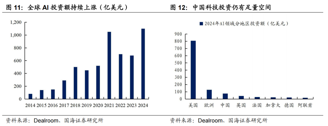 政策端,伴随上半年国家出台多项措施持续强化科技板块战略核心地位,中国科技相关投资仍有足量空间。政策支持方面,2025年政府工作报告首次将“科技创新引领产业建设”列为首要经济任务。并且多地发布AI算力补贴与退税政策直接减轻企业研发负担;融资支持方面,港股“科企专线”与科创板门槛下调拓宽未盈利企业融资通道。政策合力凸显科技驱动经济增长的核心引擎地位,科技投资有望加速。