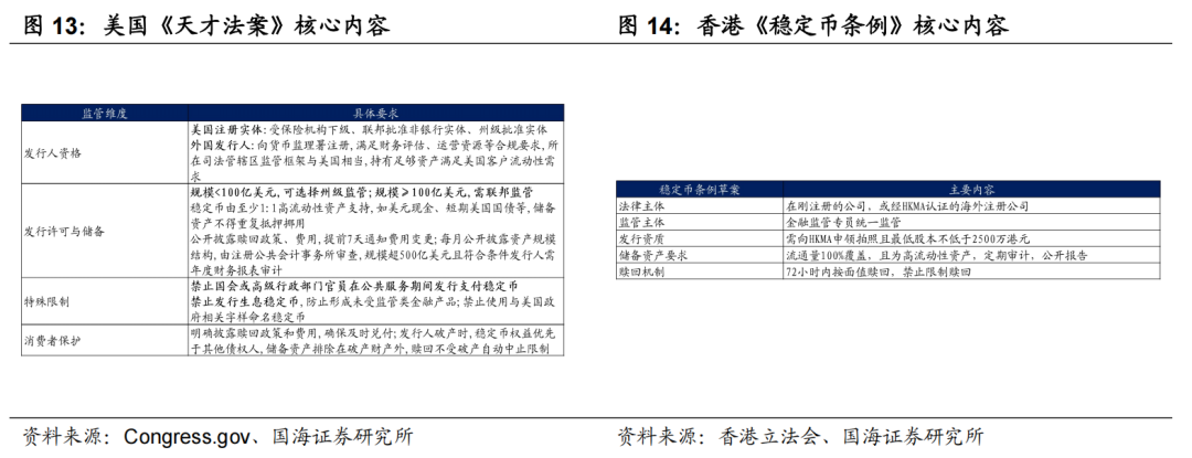 全球稳定币监管加速落地与中资券商服务升级,共同推升稳定币产业链确定性需求,建议关注相关转债标的。香港《稳定币条例》及美国《GENIUS法案》等新规建立合规框架,为稳定币支付系统与银行IT服务创造刚性需求;数字人民币试点与香港监管沙盒同时推动其在跨境支付中的应用。催化层面,国泰君安国际成为首家获准在香港提供全方位虚拟资产交易服务的持牌中资券商,标志着机构服务渠道的实质性打通,多重因素共同利好稳定币生态链企业及其关联金融科技服务商。