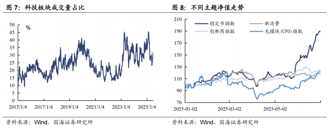 正股层面,当前科技板块成交量占比显著回升,科技类主题持续领跑。从成交量看,TMT板块成交量占比显著回升,6月27日已占A股总成交量的31.94%,资金聚焦信号明确;且近期科技类主题持续领跑,而创新药与新消费板块则呈现相对弱势的震荡格局。后市来看,随着AI技术迭代加速及人形机器人产业化突破密集落地,产业趋势正从“技术性突破”向“趋势性突破”切换,科技成长板块的投资价值亟待重估。