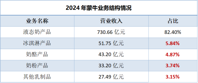 直到2024年,蒙牛乳业冰淇淋、奶酪、奶粉及其他乳制品业务合计收入也就只有155.64亿元,占比还不到20%,没有一个能成为蒙牛幻想中的“第二增长曲线”。
