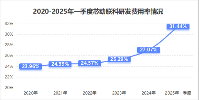 近年来,芯动联科研发费用率持续保持在20%以上,2025年一季度更是高达31%,超过了北方华创、长川科技等龙头。