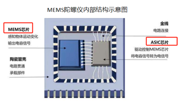 MEMS惯性传感器,主要包括陀螺仪和加速度计,它们都包含一颗MEMS芯片和一颗ASIC芯片,能够感知物体运动姿态和运动轨迹,主要用于智能导航、航空航天等领域。
