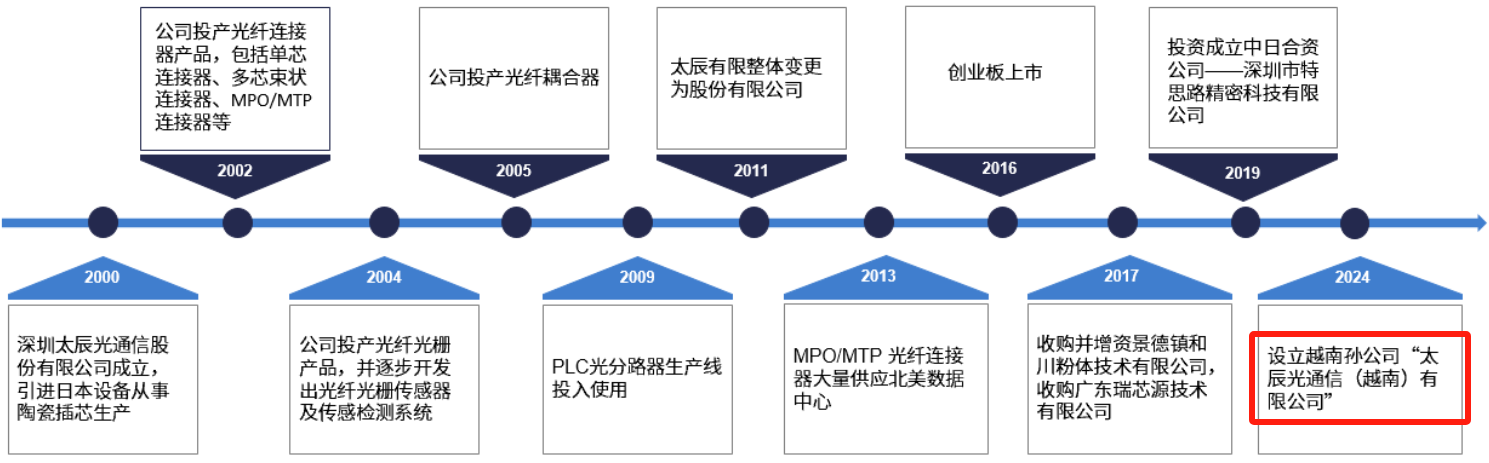 在国内市场,太辰光深度绑定AI算力建设龙头:1)字节跳动:2024年光连接订单同比增长200%,太辰光占比超50%,金额约3亿元。2)华为:昇腾AI集群项目采用太辰光定制化MPO方案,单项目金额达2.3亿元。3)阿里云:OPCB产品在阿里云服务器中的试用规模扩大,预计2025年贡献营收2亿元。太辰光还通过与中兴通讯的战略合作,进入东南亚和中东的5G前传市场,2024年海外收入占比从15%提升至25%。