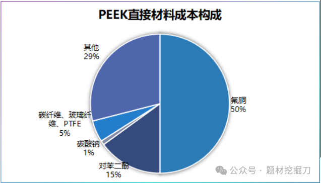 成本下不来:原材料占了 PEEK 生产成本的 75%,其中氟酮又占了材料成本的 50%,而氟酮扩产要 3-5 年,所以 PEEK 价格很容易被原材料带着波动。