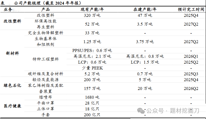 那借的钱去哪了?扩产。截至 2024 年,改性塑料在建产能 47 万吨 / 年,新材料 6.05 万吨 / 年,苯乙烯树脂及配套装置 20 万吨 / 年,摊子铺得不小。