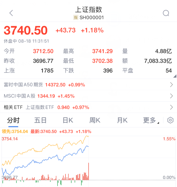 1.家人们上午好啊, 今天再次见证历史啦!刚刚上证指数突破3731.69阶段高点,站上3740.50点,刷新2015年8月21日以来的新高,直接破了近十年高点!创业板也是站上2600的目标位,目前A股上涨空间已经打开,接下来大盘看涨4000点,创业板看2700点,冲冲冲!