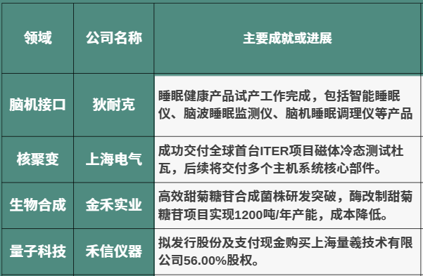 根据多家机构研报目前有30余只个股涉及脑机接口、核聚变、生物合成、量子科技等未来科技题材,这些股票大多具备实质性业务,发展态势备受关注。