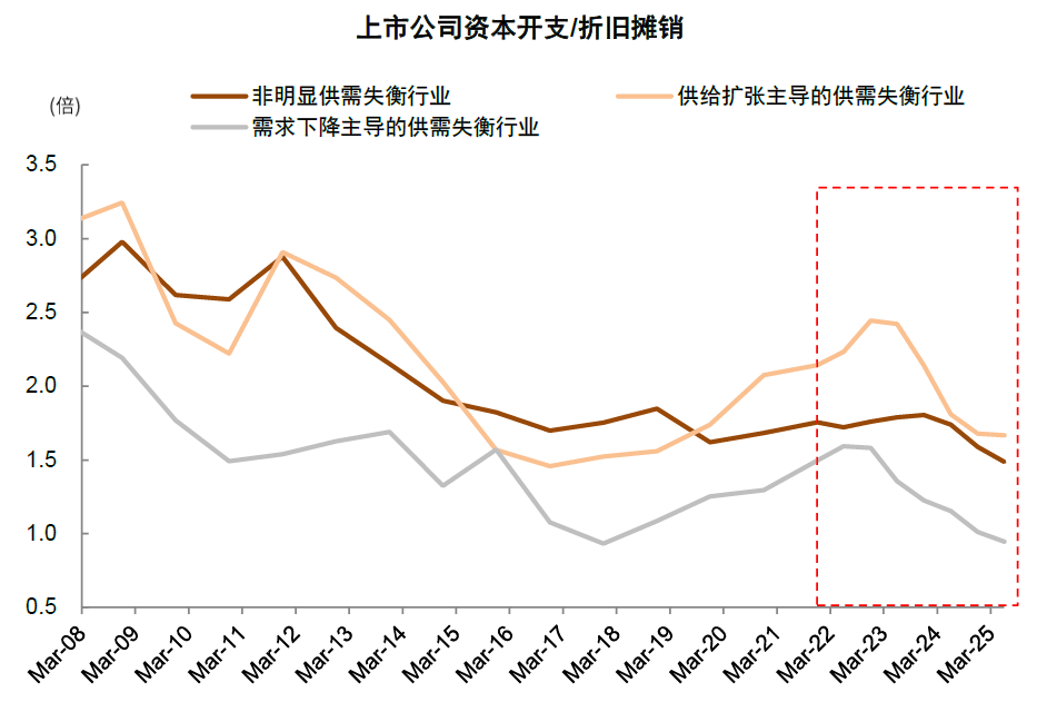 4)阶段四:供给侧出清较为充分,传统行业通常体现在资本开支/折旧摊销接近1倍,投入和折损基本实现平衡,但不同行业的阈值和磨底时间长度存在差别;