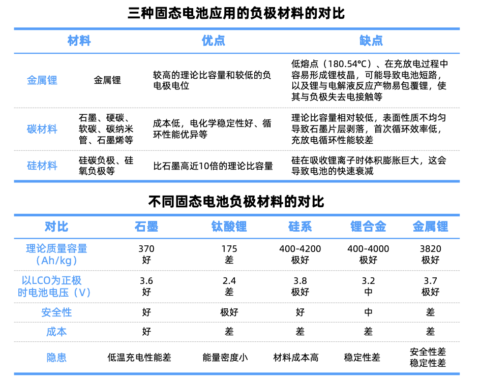 目前固态电池的负极材料主要有碳族负极、硅基负极和金属锂负极三类。