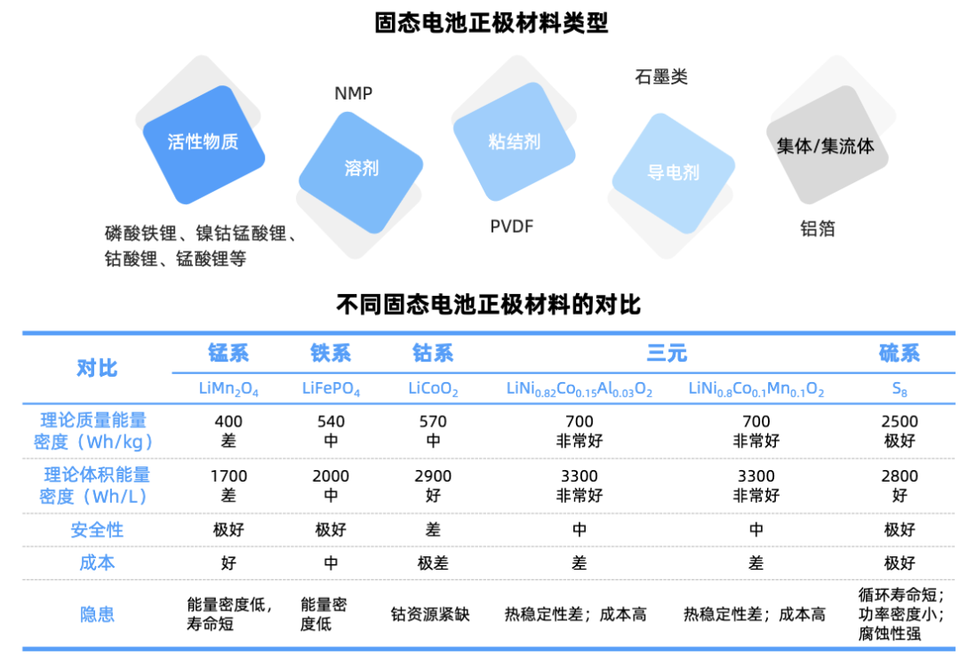 与液态电池对比:固态电池正极材料体系变化较小,固态正极材料主要以高镍三元体系为主。