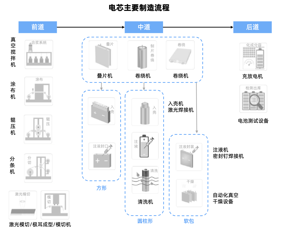 固态电池各工艺段所需设备