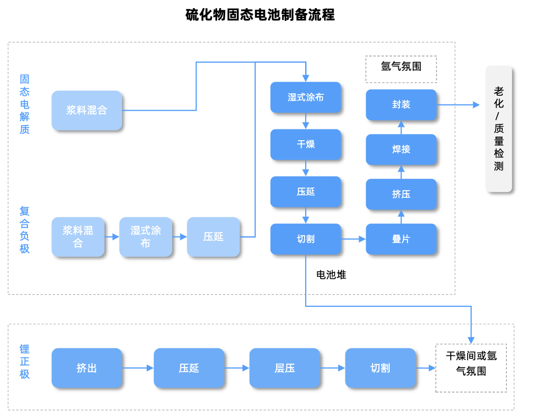 设备是固态电池量产的关键,重点在于解决固态电解质与电极材料的界面接触和高效制备等难题。