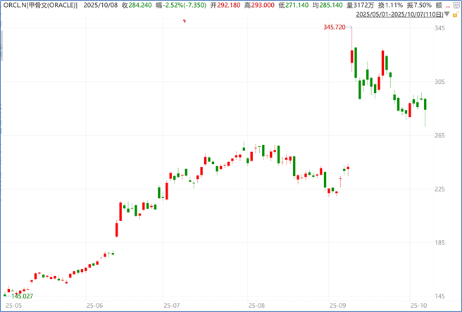 于是甲骨文股价大跌,上次暴涨的40%涨幅,现在已经回吐一大半了。
