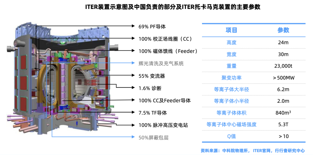 ITER超导线圈材料主要包括Nb3Sn、NbTi等。我国承担ITER装置所有18个校正场线圈的制造,此外我国承担所有31套磁体馈线的制造。