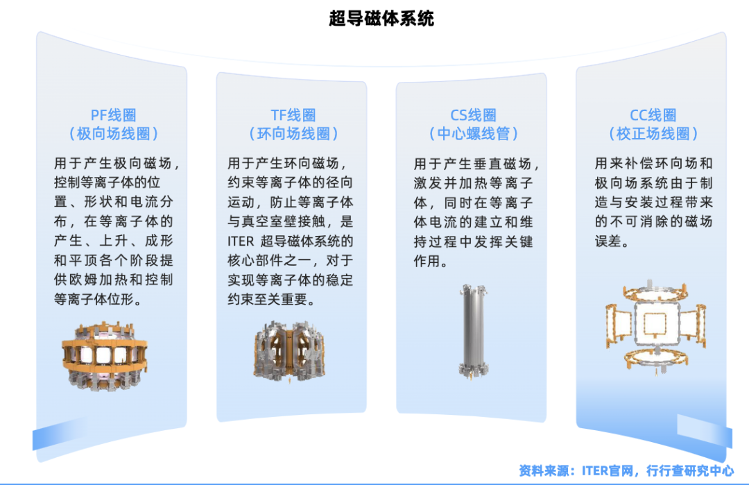 国际热核聚变实验堆ITER计划装置磁体系统由多个线圈组成。