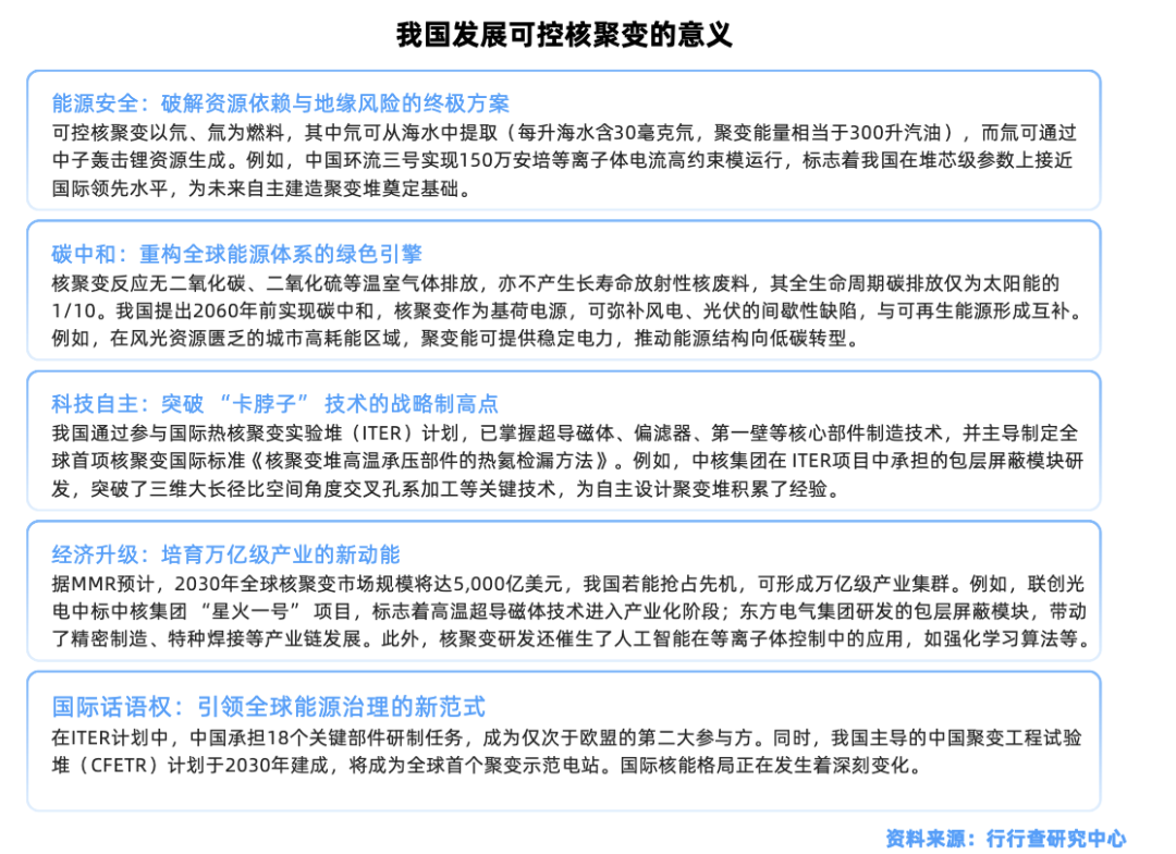 2025年3月,中国环流三号(HL-3)实现了离子和电子温度的“双亿度”突破。通过多年的持续投入和不懈努力,中国在核聚变领域取得了一系列重要成就,中国可控核聚变研究在国际上已处于非常先进的水平。